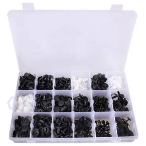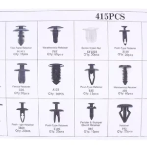 Posee 415 piezas en diferentes modelos para adaptarse a todas las situaciones. La caja esta dividida en compartimentos según el tamaño de los sujetadores por lo que no tendrá que preocuparse por confundir los tamaños.