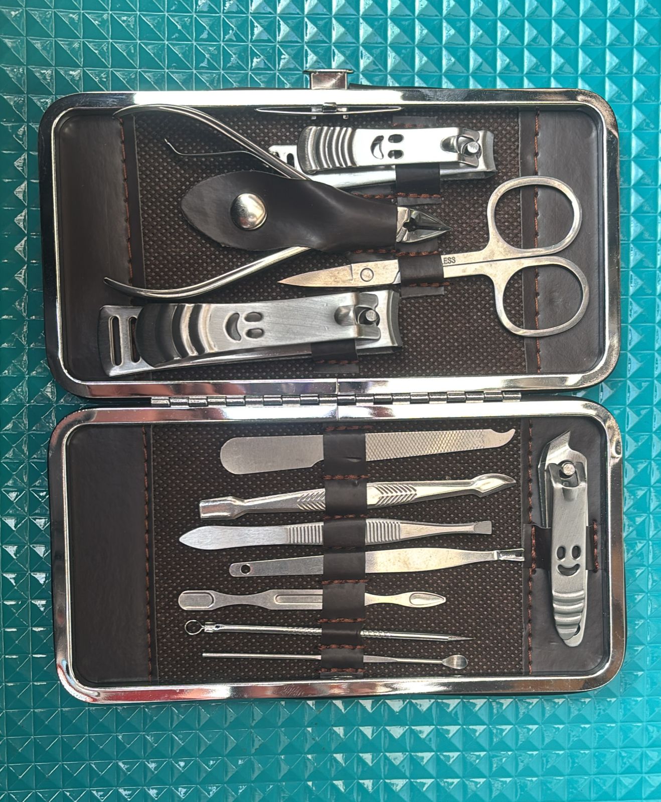 Este tipo de set incluye varias herramientas para el cuidado de uñas de manos y pies, así como para el cuidado facial, como pinzas para cejas o herramientas para eliminar puntos negros.