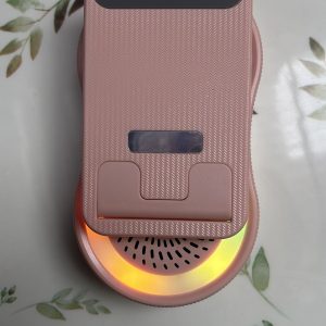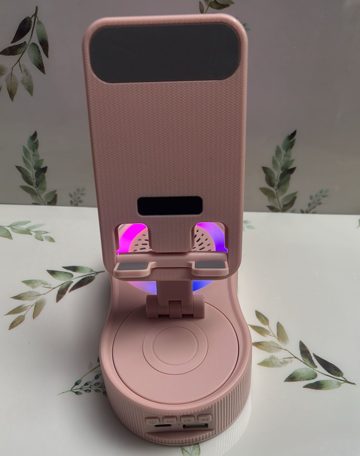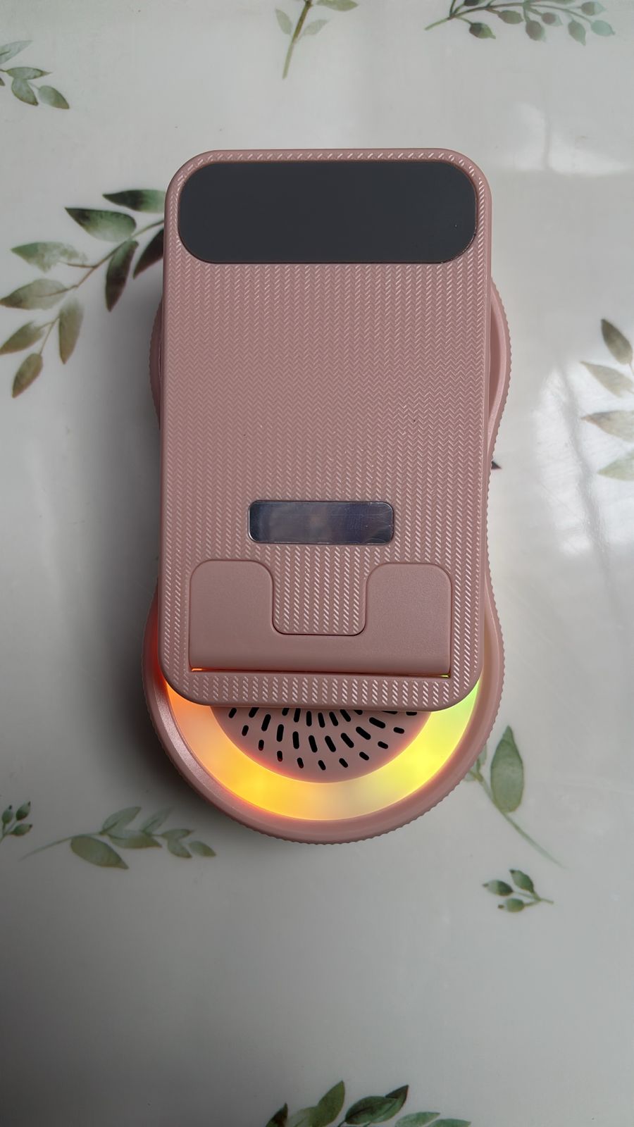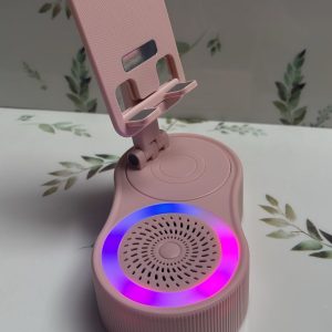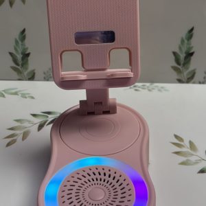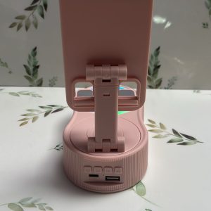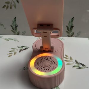 El objeto en la imagen es un altavoz Bluetooth con soporte para teléfono y luz ambiental.